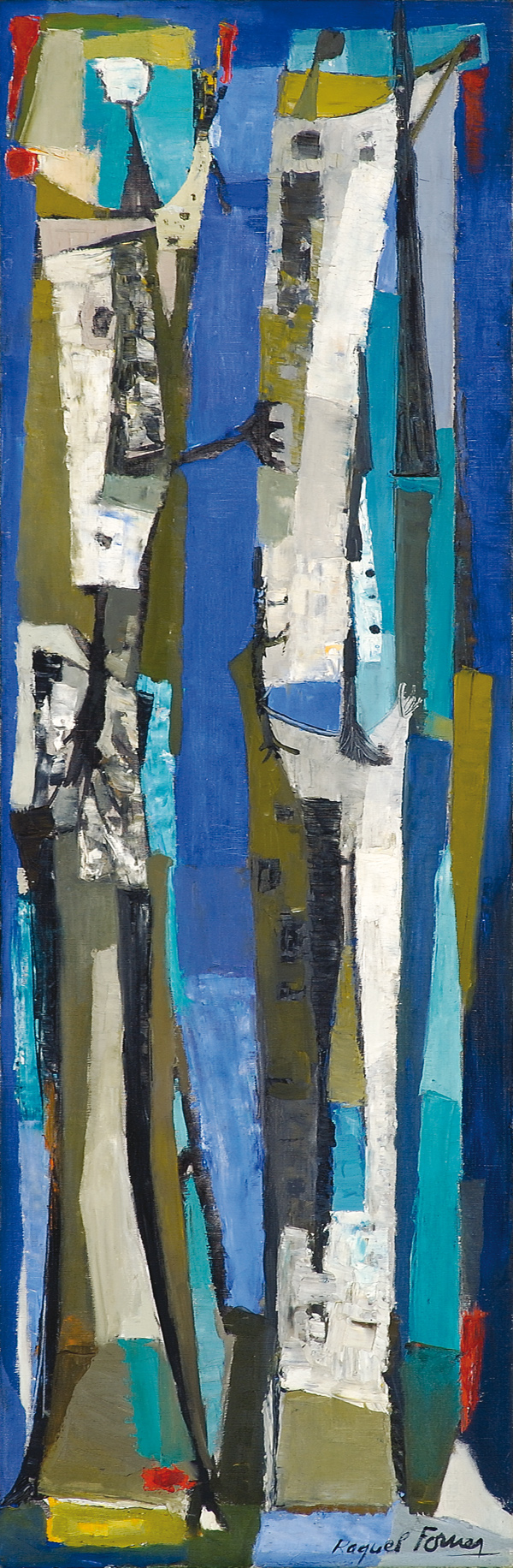 Las series de pinturas de Raquel Forner se han relacionado directamente con los grandes acontecimientos sociopolíticos mundiales. Inicialmente expresionista, derivó en diferentes lenguajes a lo largo de su trayectoria: en los comienzos del 30 se inclinó por la búsqueda de la organización constructiva, más tarde -hacia 1936- acentuó su obra con alusiones dramáticas sugeridas por la Guerra Civil Española y en la década del 50, dio comienzo a las series del espacio, de referencias informalistas.