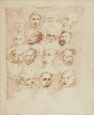 Kaplan retrata al capitán Alfred Dreyfus en Souvenir del affaire Dreyffus vestido con uniforme militar, en el que se observa claramente la condecoración de la Legión de Honor sobre el pecho, que le fue otorgada en 1906. Este hecho nos permite datar nuestro dibujo con posterioridad a esa fecha, en épocas en la que Carlés había avanzado en su carrera política y ocupaba una banca en su primer período como diputado, entre los años 1906 y 1910. Realizado con tinta a la pluma e iluminado con acuarela, se destaca la calidad del estilo caricaturesco de nuestro artista. Con gran poder de síntesis y recursos simbólicos evoca la victoria del retratado -que fue entendida también como la del liberalismo y la democracia- con la representación de unas manos poderosas, tal vez divinas, coronándolo con laureles. Personajes que intervinieron en el affaire Dreyfus incluye quince retratos de personajes resueltos con la misma técnica y lenguaje, unidos por un cordón que los implica en el caso que dividió a la sociedad francesa y marcó un hito en la historia del antisemitismo en Francia.