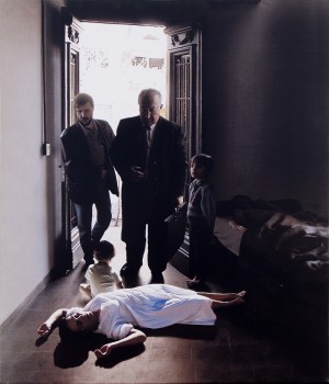 En esta obra el autor condensa sus preocupaciones y reflexiones acerca de la representación visual tomando como mecanismo de creación la cita pictórica. La referencia es a una obra de Antonio Berni titulada Manifestación, de 1934. Pieza considerada como fundacional del Nuevo Realismo, con el que Berni, propuso renovar la experiencia visual: nuevas formas, materialidades y estrecho vínculo del artista con los acontecimientos políticos y sociales del momento. En la imagen actual aparecen actores sociales in-visibilizados —desocupados, excluidos y nuevos pobres— vinculados a las protestas sociales de la Argentina de principios del 2000.