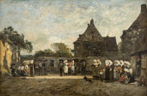 Boudin inició sus actividades en Le Havre. Trabajó en una casa de enmarcados y allí se relacionó con artistas -entre ellos Constant Troyon, Jean Baptiste Isabey, Jean Francois Millet- que lo alentaron a pintar. Luego viajó a Paris, estudió en el Louvre y estableció contacto con los pintores de la Escuela de Barbizón iniciando una profunda admiración por la obra de Corot. En 1851, la ciudad de El Havre le otorgó una ayuda económica para estudiar pintura en Paris por tres años. En 1854 se instaló en la granja de Saint Simeón y desde 1855 realizó viajes por la Bretaña y la costa de Normandía, que intercaló con estancias en Paris. Fue Jongkind quien lo influyó a pintar al aire libre y a través de Gustave Courbet conoció a Baudelaire, el primer crítico en atraer la atención del público hacia su primer envío al Salón de Paris en 1859. En 1874 participó de la primera muestra impresionista en casa del fotógrafo Nadar. Durante los 70 viajó por Bélgica, Holanda y el sur de Francia y en 1892, en el mismo año en que fue premiado con la Legión de Honor, llegó a Venecia en busca de inspiración para su pintura. Obtuvo una medalla de tercera categoría en Salón de 1881 y una de oro en la Exposición Universal de 1889.