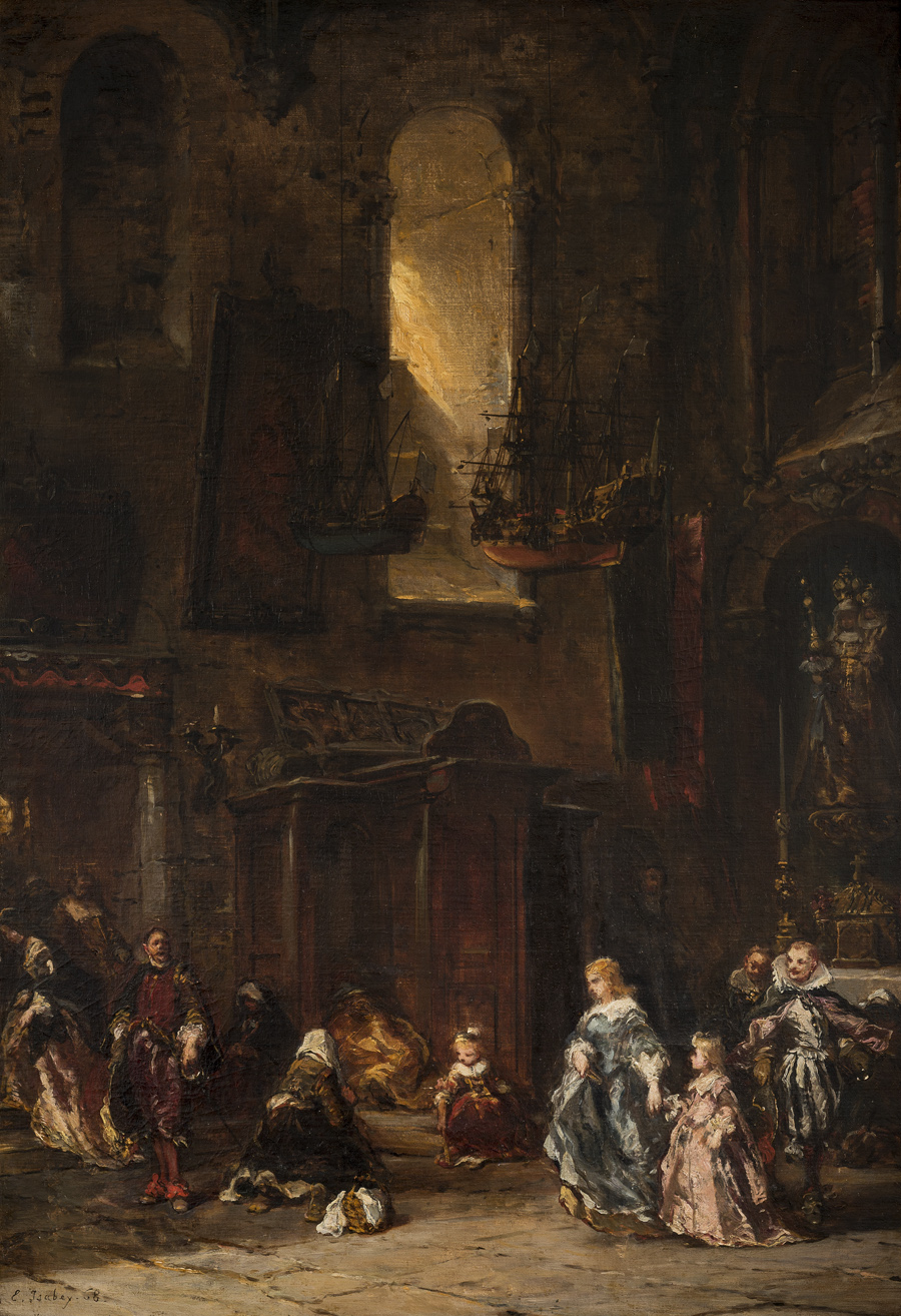 Colección Castagnino+macro Isabey, Louis-Eugene-Gabriel Paris, 1803 Monevrain, 1886 Otras obras Dames aux perroquets, La vie au chateau, 1852