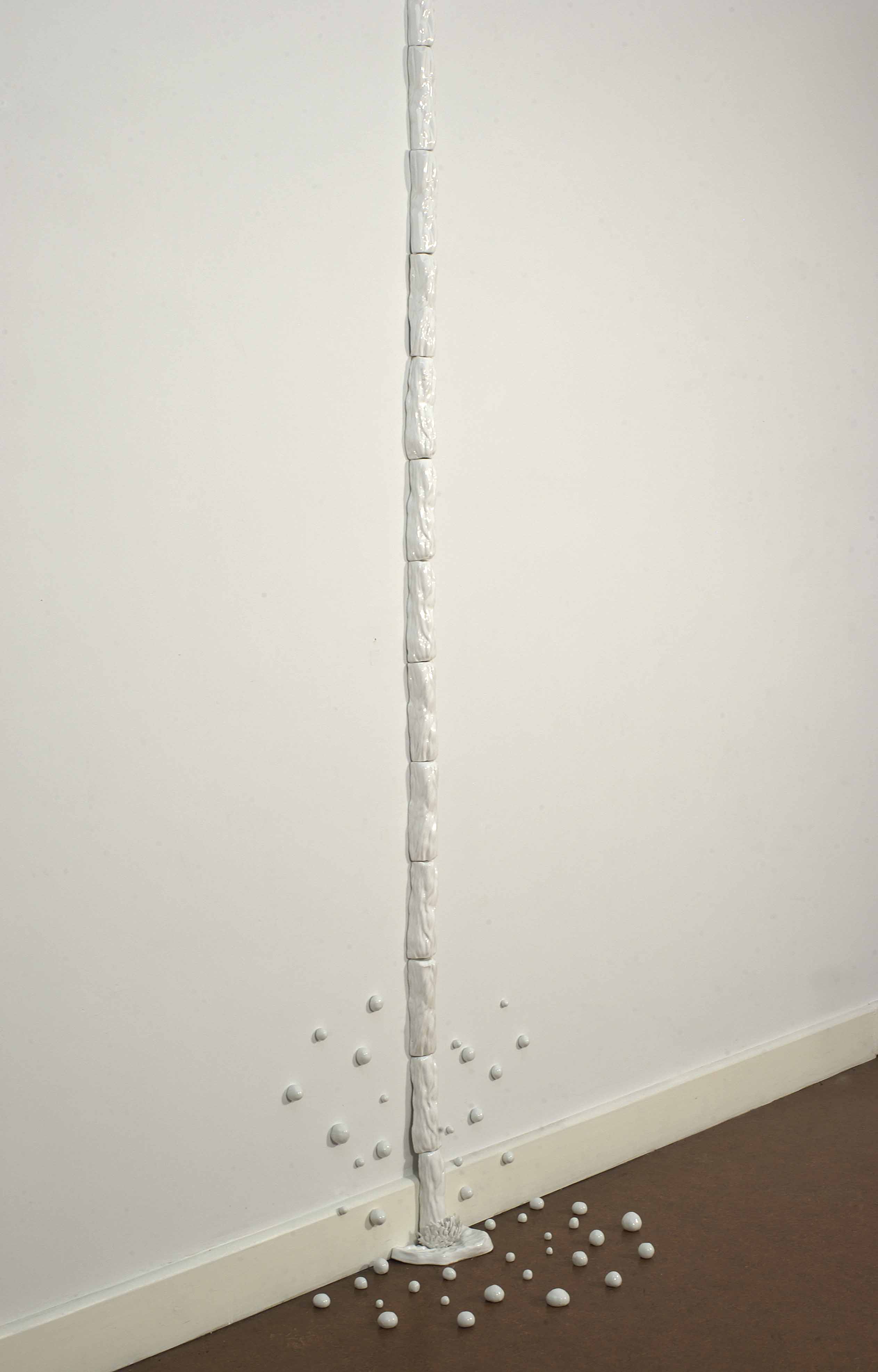 Agua y arcilla son los elementos que operan como constantes en laproducción de Battistelli y, en estos lineamientos, se encuentra Cascada bajo luz de luna. Una instalación en la que el agua como imagen queda depositada en la cascada, como concepto. La misma es producto de la diseminación ya que nace como un brazo de Río Blanco. Una obra de 2001 que crece en cada presentación y que culmina en esta pequeña catarata donde el desvanecimiento potencial de las gotas funciona como la marca que augura el recomenzar del ciclo.