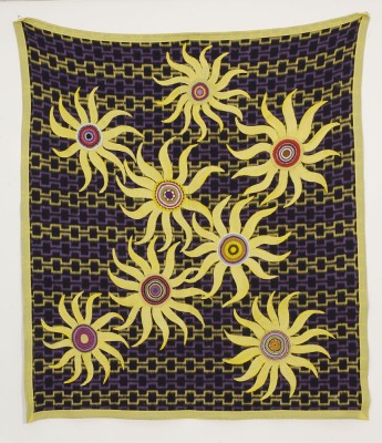 Por consiguiente, a través de esta estética aparentemente ornamental y banal y sirviéndose de prácticas propias del hacer femenino, Centurión plasma sobre las cobijas “la crisis de la oposición binaria entre lo femenino y lo masculino, y la concepción contemporánea de la diferencia múltiple y heterogénea de los sexos”. (1)