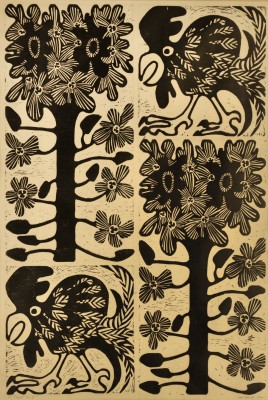 A principios de los setenta Mele Bruiniard desarrolló un método de construcción de la imagen en el que repite la impresión de un patrón, procedimiento que ha empleado también en producciones realizadas en décadas posteriores. El producto de estas investigaciones en materia de lenguaje plástico conforma la denominada serie Modular de la cual forma parte esta xilografía.