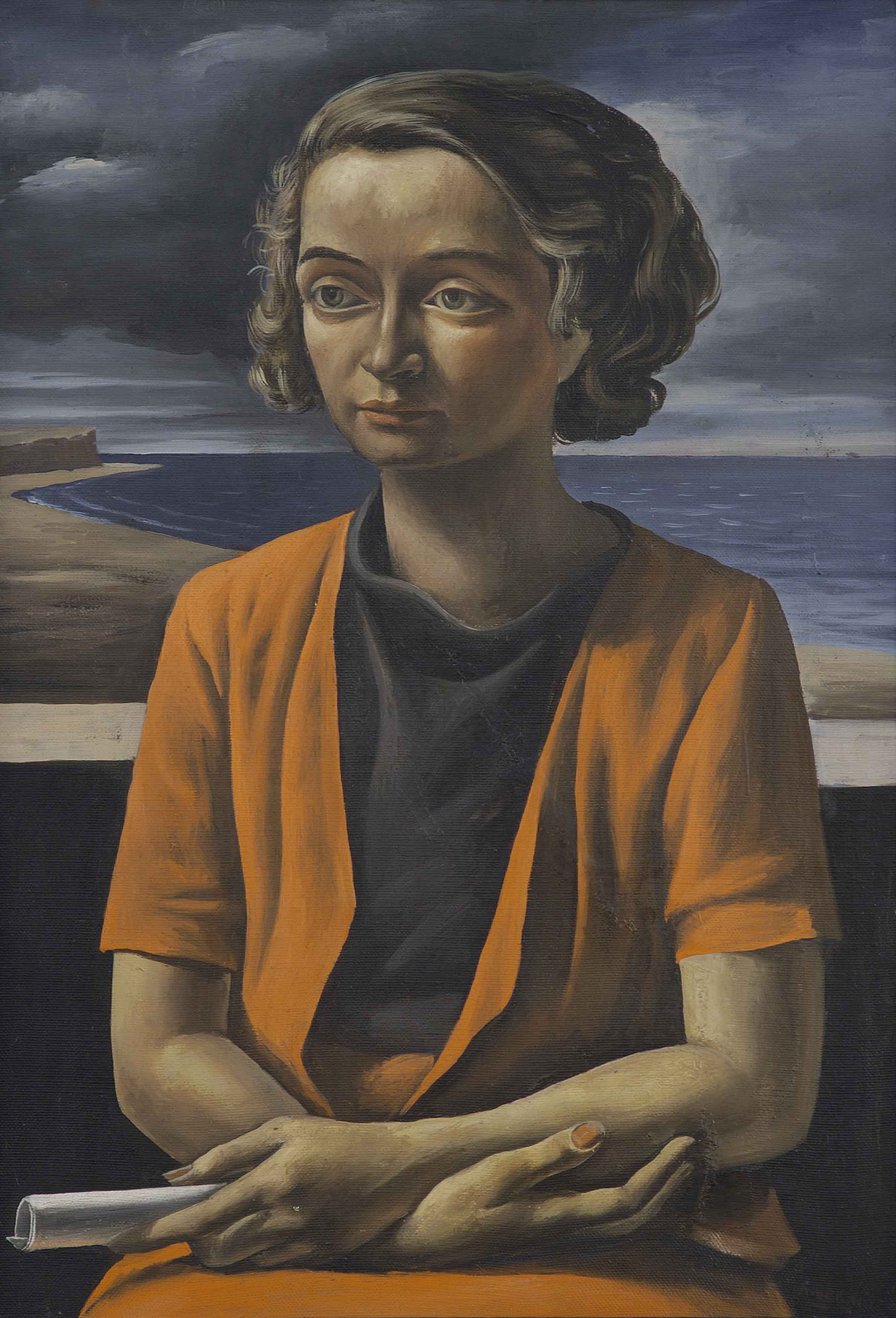 Retrato representa a Paule Cazenave, su mujer francesa. Escultora y discípula de Antoine Bourdelle, también había sido colaboradora del escritor socialista Henri Barbusse. Berni la representa con un paisaje costero de fondo -que podríamos arriesgar se trata de la costa atlántica francesa- y un papel enrollado en su mano izquierda.