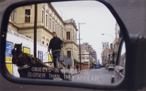 Rosario perteneciente a la serie Retratos (2004) forma parte de ese proyecto. Un conjunto de primeros planos fotográficos de equinos –que copiaban la pose de algunas pinturas del siglo XVIII destinadas a caballos de pedigree– representados sobre fondos azules y planteados como fotos carnet destinadas a los documentos de identidad. Un modo de registrar y representar al cartonero como nuevo tipo social. El caballo, que alguna vez fuera símbolo de la prosperidad para el campo argentino, por entonces se transformaba en signo de la desigualdad en la movilidad social.