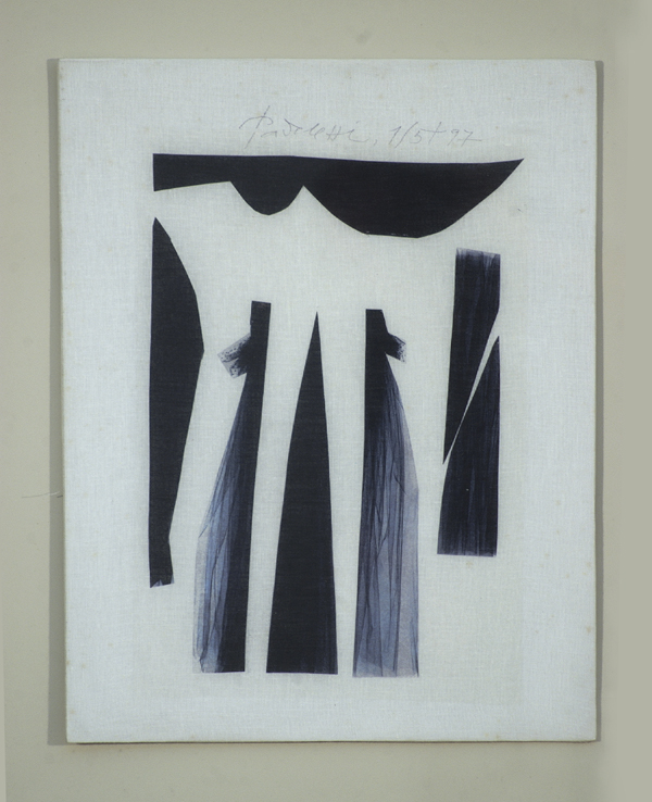 En los primeros años de la década del 70, Padeletti acentuó las resonancias budistas en su obra visual, poniendo mayor énfasis en el juego espacial en tanto el Budismo Zen considera el espacio como vacío y realidad última. En estos parámetros puede leerse esta obra, al igual que el resto del cuerpo que integra la colección Castagnino+macro. Fechadas entre 1997 y 1998, todas ha sido realizadas a partir de una serie de 1985. En ellas, es posible visualizar los ejes que signaron sus etapas anteriores: las leyes del azar (fines de los años 60) y la geometría aprehendida de Grela (fin de la década del 70). Elementos que se confugan a fin de reforzar el concepto de vacío mediante la disposición de formas simples sobre el espacio plano cuya referencia principal se encuentra en en las pinturas japonesas y chinas de paisaje de filiación taoísta y budista zen. En este sentido, “el fondo, el espacio vacío, predomina abiertamente sobre las figuras”.[1]
