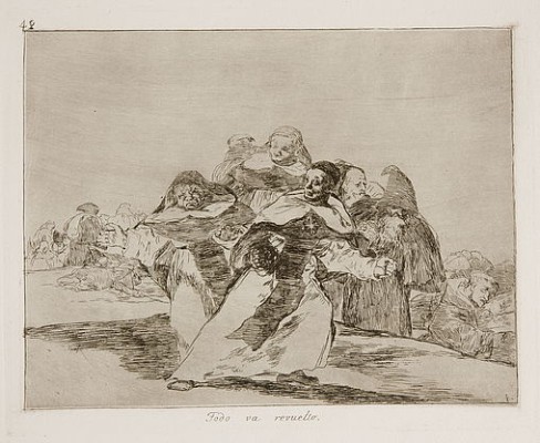 Castagnino+macro Goya y Lucientes, Francisco de Fuendetodos, Zaragoza, España, 1746 Burdeos, Francia, 1828 Otras obras Tristes presentimientos de lo que ha de acontecer, 1810-1814 (1863) Lo mismo, 1810-1814 (1863) Con razón ó sin ella, 1810-1814 (1863) Las mugeres dan valor, 1810-1814 (1863) Y son fieras, 1810-1814 (1863) Bien se te está, 1810-1814 (1863) ¡Qué valor!, 1810-1814 (1863) Siempre sucede, 1810-1814 (1863) No quieren , 1810-1814 (1863) Tampoco, 1810-1814 (1863) Ni por esas, 1810-1814 (1863) Por eso habéis nacido, 1810-1814 (1863) Amarga presencia , 1810-1814 (1863) ¡Duro es el paso!, 1810-1814 (1863) Y no hai remedio, 1810-1814 (1863) Se aprovechan, 1810-1814 (1863) Enterrar y callar, 1810-1814 (1863) No se convienen, 1810-1814 (1863) Ya no hay tiempo, 1810-1814 (1863) Curarlos y a otra, 1810-1814 (1863) Será lo mismo, 1810-1814 (1863) Tanto y más, 1810-1814 (1863) Lo mismo en otras partes, 1810-1814 (1863) Aún podrán servir, 1810-1814 (1863) Otro modo de cazar a pie, 1814-1816 (1921) El animoso moro Gazul es el primero que lanceó toros en regla, 1814-1816 (1921) Los moros hacen capeo en la plaza con su albornoz, 1814-1816 (1921) Origen de los arpones o banderillas, 1814-1816 (1921) Cogida de un moro estando en la plaza, 1814-1816 (1921) Un caballero español mata a toro después de haber perdido el caballo, 1814-1816 (1921) Carlos V lanceando un toro en la plaza de Valladolid, 1814-1816 (1921) El Cid Campeador lanceando otro toro, 1814-1816 (1921) Desjarrete de la canalla con lanzas, medias lunas y otras armas, 1814-1816 (1921) Un caballero español en plaza quebrando rejoncillos, sin auxilios de los chulos, 1814-1816 (1921) El diestrísimo estudiante de Falces, embozado, burla al toro con sus quiebros, 1814-1816 (1921) El famoso Martincho poniendo banderillas al quiebro , 1814-1816 (1921) El mismo vuelca un toro en la plaza de Madrid, 1814-1816 (1921) Palenque de los moros hecho con burros, para defenderse del toro embolado, 1814-1816 (1921) Temperidad de Martincho en la plaza de Zaragoza, 1814-1816 (1921) Otra locura suya en la misma plaza, 1814-1816 (1921) Ligereza y atrevimiento de Juanito Apiñani en la de Madrid, 1814-1816 (1921) Valor varonil de la célebre Pajuerela en la de Zaragoza, Mariano Ceballos, alias el Indio, mata al toro desde su caballo, 1814-1816 (1921) El mismo Ceballos montado sobre otro toro quiebra rejones en la plaza de Madrid, 1814-1816 (1921) Echan perros al toro, 1942 Caída de un picador de su caballo debajo del toro, El célebre Fernando del Toro, varilarguero, obligando a la fiera con su garrocha, El esforzado Rendón picando un toro, de cuya suerte murió en la plaza de Madrid, 1814-1816 (1921) Pepe Illo haciendo el recorte al toro, 1814-1816 (1921) Pedro Romero matando a toro parado, 1942 Banderillas de juego, 1814-1816 (1921) Dos grupos de picadores arrollados de seguida por un solo toro, 1814-1816 (1921) La desgraciada muerte de Pepe Illo en la plaza de Madrid, 1942 Un caballero en plaza quebrando un rejoncillo con ayuda de un chulo, 1814-1816 (1921) Desgraciada embestida de un poderoso toro, 1814-1816 (1921) Perros al toro, 1814-1816 (1921) Un varilarguero, montado a hombros de un chulo, pica al toro , 1814-1816 (1921) Espanto y confusión en la defensa de un chulo cogido, 1814-1816 (1921) Varilarguero y chulo haciendo el quite a un torero cogido, 1814-1816 (1921) Función de Mojiganga, 1814-1816 (1921) También estos, 1810-1814 (1863) No se puede mirar, 1810-1814 (1863) Caridad, 1810-1814 (1863) Populacho, 1810-1814 (1863) Lo merecía, 1810-1814 (1863) Estragos de la guerra, 1810-1814 (1863) ¡Fuerte cosa es!, 1810-1814 (1863) ¿Por qué?, 1810-1814 (1863) Qué hai que hacer más?, 1810-1814 (1863) Por una navaja, 1810-1814 (1863) No se puede saber por qué, 1810-1814 (1863) Esto es peor, 1810-1814 (1863) Bárbaros!, 1810-1814 (1863) Grande hazaña! Con muertos!, 1810-1814 (1863) Algún partido saca, 1810-1814 (1863) Escapan entre las llamas, 1810-1814 (1863) También esto, 1810-1814 (1863) Yo lo vi, 1810-1814 (1863) Y esto también, 1810-1814 (1863) Esto es malo, 1810-1814 (1863) Así sucedió, 1810-1814 (1863) Cruel lástima!, 1810-1814 (1863) Caridad de una muger, 1810-1814 (1863) Madre infeliz!, 1810-1814 (1863) Gracias á la almorta, 1810-1814 (1863) No llegan á tiempo, 1810-1814 (1863) Expiró sin remedio, 1810-1814 (1863) Clamores en vano, 1810-1814 (1863) Lo peor es pedir, 1810-1814 (1863) Al cementerio, 1810-1814 (1863) Sanos y enfermos, 1810-1814 (1863) No hay que dar voces, 1810-1814 (1863) De qué sirve una taza?, 1810-1814 (1863) No hay quien los socorra, 1810-1814 (1863) Si son de otro linage, 1810-1814 (1863) Las camas de la muerte, 1810-1814 (1863) Tampoco, 1810-1814 (1863) Muertos recogidos, 1810-1814 (1863) Carretadas al cementerio, 1810-1814 (1863) Qué alboroto es éste?, 1810-1814 (1863) Extraña devoción!, 1810-1814 (1863) Esto no lo es menos, 1810-1814 (1863) Que locura!, 1810-1814 (1863) Nada. Ello dirá, 1810-1814 (1863) No saben el camino, 1810-1814 (1863) Contra el bien general, 1810-1814 (1863) Las resultas, 1810-1814 (1863) Gatesca pantomina, 1810-1814 (1863) Esto es lo peor!, 1810-1814 (1863) Farándula de charlatanes, 1810-1814 (1863) El buitre carnívoro, 1810-1814 (1863) Que se rompe la cuerda, 1810-1814 (1863) Se defiende bien, 1810-1814 (1863) Murió la Verdad, 1810-1814 (1863) Si resucitará?, 1810-1814 (1863) Disparate femenino, Disparate de miedo, Disparate ridículo, Bobalicón, Disparate volando, Disparate furioso, Disparate matrimonial, Los ensacados , Disparate general, Disparate claro, Disparate pobre, Disparate alegre, Modo de volar, Disparate de carnaval, Dieciseis personas entalagadas, Una mujer quiere unir, Sobre un estrecho blanco, Disparate fúnebre, Mujer aterrorizada,