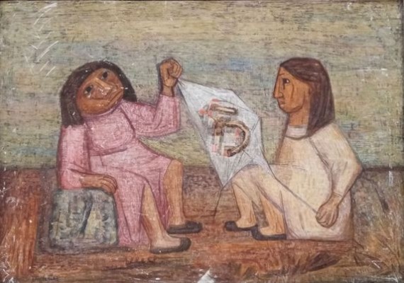 Personajes también responde claramente a la mencionada etapa. Con una paleta de tintes quebrados y terrosos, el artista supo captar el contexto en el que se hallan inscriptas las figuras de la representación, aludiendo a determinadas poblaciones lugareñas.