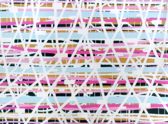 A fines de los 90, estos desarrollos desembocan en una serie de formas de gran despliegue visual, que conforman entramados complejos. Rigor y movilidad juegan en el mismo plano en la obra Sin título, de 1999, que forma parte de la colección. Este trabajo, tiende a enfatizar las diferencias visuales, mediante la utilización de planos sobrepuestos, que marcan la relación fluctuante entre figura y fondo. Constituye una de las imágenes que se basan en la síntesis de planos, simplificaciones y estilizaciones, que lo llevan a recuperar ciertas voces modernistas a partir del empleo del material pictórico.
