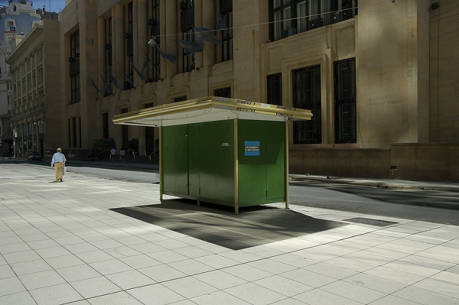 La vie es una serie fotográfica que Giordano inicia en los primeros años de 2000, tomando como escenario aquellos sitios de Buenos Aires donde la luz natural es capaz de reflejarse o refractarse sobre superficies arquitectónicas espejadas. La finalidad es capturar y hacer visible el instante en que los haces de luz se topan cotidianamente con los transeúntes de modo imperceptible en las agitadas urbes posmodernas. Sin título forma parte de este conjunto. En este caso, la vida diurna con cielos despejados es el paisaje a fotografiar. Elección devenida del relevamiento de lugares y horarios potenciales. Las tomas no son el resultado de una puesta en escena y tampoco cuentan con intervención digital, para dar así, lugar al azar. De este modo, cada imagen se tiñe de cierta extrañeza a partir de la intervención lumínica, poniendo en tela de juicio la verosimilitud de esos momentos fugaces.