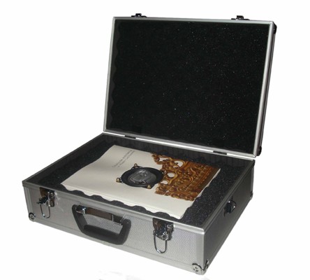 El sonido que puede escucharse, al acercar el oído al maletín, permite percibir el murmullo del público que recorre las salas del Museo Castagnino donde pueden verse algunas de las obras reproducidas en el mencionado libro.