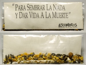 Varios de estos objetos de conciencia forman parte de la donación del grupo Escombros. Para estos artistas, objetos de conciencia son aquellos objetos en serie cuyo contenido induce a quienes lo reciben, a reflexionar sobre el tema propuesto. Tienen, sin excepción, un claro contenido ético y social. Dentro de esta categoría se encuentra Agua S.O.S, de 1990. Este objeto múltiple surge cuando Escombros organiza junto a Greenpeace América Latina, la convocatoria "Recuperar", en una fábrica abandonada de la ciudad de Avellaneda. En esa oportunidad, además de presentar la obra Pirámide, el grupo extrajo agua contaminada del Riachuelo, la fraccionó y envasó, haciendo cada botella un objeto de conciencia. Lo recaudado con la venta de cada objeto fue donado al hogar para chicos de la calle "Pelota de Trapo".