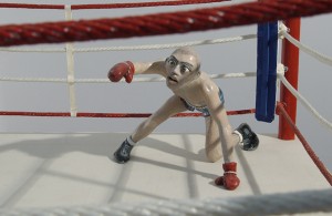 Luego de un período de no producción, en los años ochenta y noventa sigue conservando esa tendencia a desplazarse de los lugares asignados. La parodia y la cita se convierten en dos de los mecanismos de producción estética frecuentes en sus instalaciones, objetos y esculturas. Estos sostienen una narrativa conceptual, tendiente a “poner al espectador en el inquietante trance de verse reflejado y encontrarse seducido por la obra, real en su materialidad”. (1) Es posible ver este aspecto en la obra Rosa de lejos, de 1987, perteneciente a la Colección de arte contemporáneo de Rosario. Allí, el autor representa a uno de sus personajes en el marco de una escena común, que, por la forma en que está construida, pone en ridículo la situación representada. La ironía queda subrayada con el título de la obra que proviene de una telenovela, la cual, en ese marco, funciona como una referencia social de la época. Iniciativa que conduce a remarcar que este artista apunta a “desenmascarar la realidad social de una época manipulada por la industria de la cultura”. (2) De esa manera, el autor pone a lo social en el eje de sus trabajos, mediante una estética realista en donde, como lo manifiesta El enemigo invisible (2001), logra hacer del grotesco un modelo de representación, que se asienta en un espacio intermedio entre la risa y el horror.