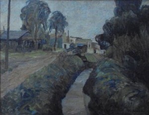 La pintura de paisajes en los años 20 y 30 tuvo gran repercusión en los salones oficiales como defensora de las ideas nacionalistas. Las vistas idealizadas e incontaminadas del interior del país, erigían la defensa de los valores argentinos frente al avance de la modernidad y de la inmigración. Daneri pintó paisajes durante toda su vida, pero su objetivo fueron algunos fragmentos suburbanos sobre los que avanzaba la metrópoli, en especial rincones de La Boca y del Riachuelo. En Paisaje, compone una vista suburbana en la que sugiere a sus pobladores -no los representa- y despoja los objetos de detalles superficiales, logrando síntesis con una construcción sólida