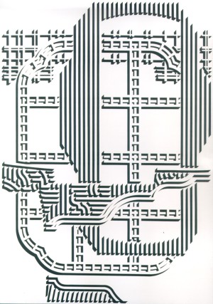 La obra toma un carácter proyectual, que desarrolla simultáneamente con sus pinturas en acrílico, aunque con otro material, el vinilo autoadhesivo. Sin título- 0301, pertenece a esta vertiente de producción.