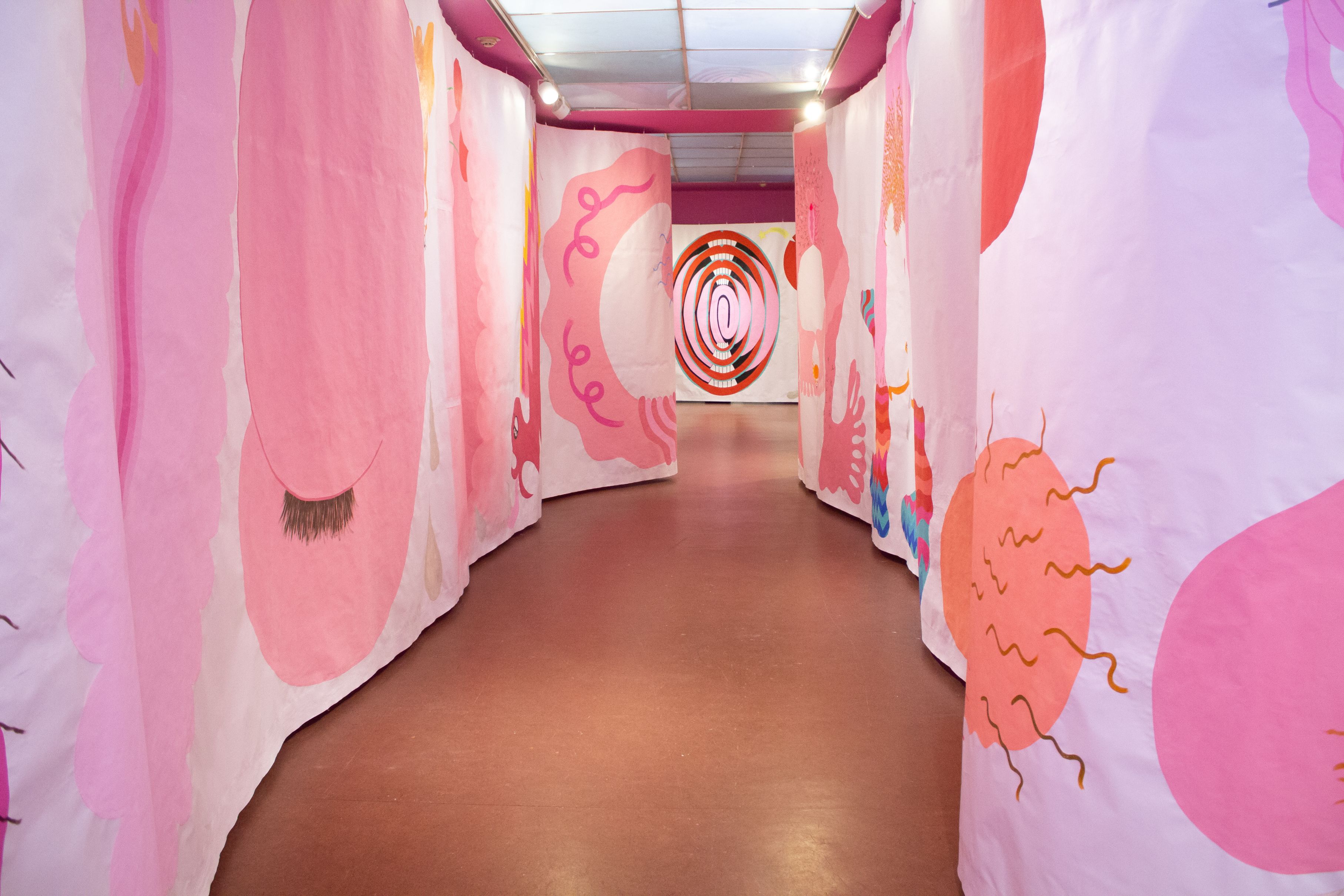 Las hermanas Lenardón proponen un recorrido experimental por una obra inmersiva: un pergamino desmesurado de 60 metros de largo y tres metros de alto inspirado en la visualidad lisérgica de los años 60 y 70. Cierra el 5 de abril.