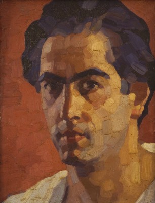 Autorretrato (joven) es un óleo de pequeño formato, aparentemente un estudio que podría datarse en la primera etapa de producción del artista. Concibe la figura geometrizando sus líneas, y utiliza pinceladas cuadradas que dejan la huella del pincel. Utiliza empastes rojos, negros azulados y violáceos con los que logra sombras contundentes que dan volumen a la figura, logrando una imagen sólida que no pierde frescura en la representación del carácter serio del joven retratado. El retrato integró la donación de su viuda luego de la muerte del artista.