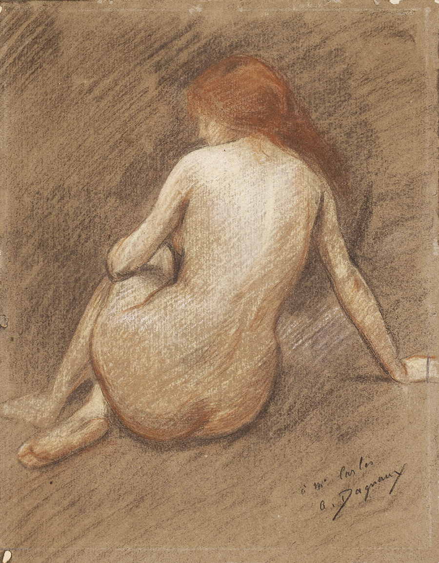 La melena pelirroja de la modelo recuerda a la del pastel Femme nue assise de dos hoy colección del Musee d´ Orsay, Paris y que se trata de un dibujo preparatorio para el óleo sobre tela Etude de nu obra exhibida en el Salon de la Societé de Beaux-Arts en 1898 , hoy en el museo de Lille, Francia. Sus características estilísticas y compositivas y la probable coincidencia en la fecha de ejecución permiten ponerla en relación con los dos desnudos de Dagnaux hoy en la colección del museo Castagnino y tal vez arriesgar que éstos fueran parte de una serie de estudios previos a las obras mencionadas.