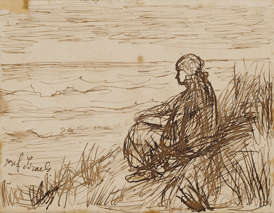 Israels ha tratado este asunto con diferentes técnicas desde 1857 y ha realizado diferentes versiones, con las que debe ponerse en relación nuestra obra, entre ellas A fishergirl on a dune, knitting del The Ashmolean Museum of Art, Oxford University, Reino Unido; A girl on the dunes (c.1890) del Haags Gemeentemuseum, Países Bajos y A fishergirl on a dune-top overlooking the sea (c. 1900) del Museo Thyssen, España.