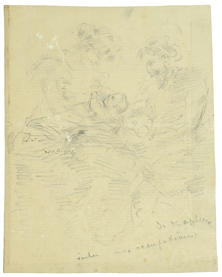 Kaplan retrata al capitán Alfred Dreyfus en Souvenir del affaire Dreyffus vestido con uniforme militar, en el que se observa claramente la condecoración de la Legión de Honor sobre el pecho, que le fue otorgada en 1906. Este hecho nos permite datar nuestro dibujo con posterioridad a esa fecha, en épocas en la que Carlés había avanzado en su carrera política y ocupaba una banca en su primer período como diputado, entre los años 1906 y 1910. Realizado con tinta a la pluma e iluminado con acuarela, se destaca la calidad del estilo caricaturesco de nuestro artista. Con gran poder de síntesis y recursos simbólicos evoca la victoria del retratado -que fue entendida también como la del liberalismo y la democracia- con la representación de unas manos poderosas, tal vez divinas, coronándolo con laureles. Personajes que intervinieron en el affaire Dreyfus incluye quince retratos de personajes resueltos con la misma técnica y lenguaje, unidos por un cordón que los implica en el caso que dividió a la sociedad francesa y marcó un hito en la historia del antisemitismo en Francia.