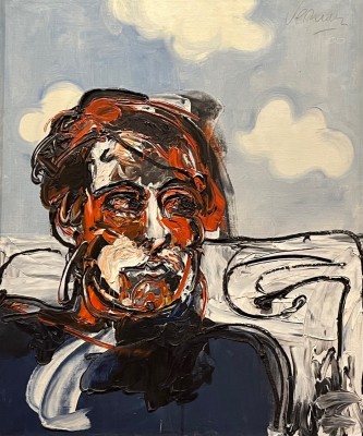 Autorretrato con nubes fue realizado en 1966, en un contexto de experimentación que implicó cierta divergencia y tensión respecto de las enseñanzas del maestro Juan Grela, que lo había orientado a una pintura de orden y rigor compositivo.