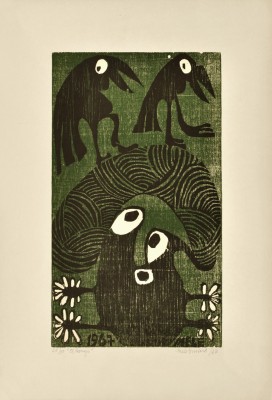 Esta xilografía representa una inflexión en la producción de la artista. Emplea recursos técnicos y procedimientos que surgen de sus búsquedas y renovaciones del lenguaje, tales como: tinta color, líneas continuas, textura de la madera y ritmo en la composición. Además recrea seres que parecen pertenecer a una naturaleza fantástica, producto de sus reminiscencias infantiles y de algunas lecturas literarias del momento.