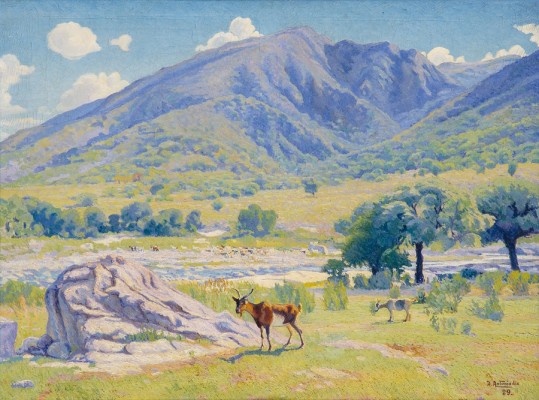 Antoniadis eligió frecuentemente como tema los paisajes serranos, que realizó durante sus continuos viajes a Córdoba durante la segunda mitad de la década del 20 y la del 30. Incluso residió allí por largas temporadas, hecho que le permitió profundizar su técnica pictórica en la resolución de la atmósfera a través de la vibración del color, que se transformó en el asunto esencial de su pintura.