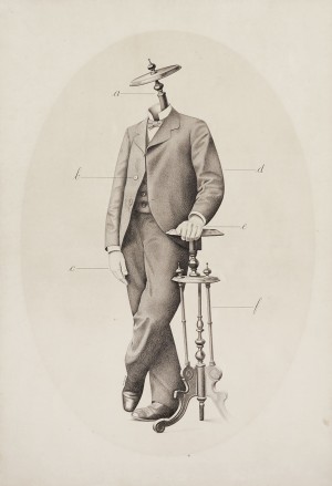No en vano Rubén Echagüe proclama ser uno de los primeros artistas de su generación en haberse dedicado a la “confección de objetos”, ese “género” novedoso que durante la década del 80 prometía que cambiaría la historia de las artes de manera radical. Solo un artista que compartiese un espíritu altamente lautreamonteano, impregnado de una profunda avidez lúdico-poética como el de Echagüe, podría emplear la creación de objetos como un modo de fabricación de sentido an-objetual. Su producción siempre sugiere que las propiedades formales de la obra deberían ser vistas como simple imágenes abstractas con sentido emblemático, esto es, como un acto. No como entidad en si, sino como modo de inducir un complejo pensamiento lírico. El simbolismo de Echagüe no es referencial, sino que sus obras crean sentido mediante una lúcida estrategia de fragmentación y recombinación, muy próxima a la de la poesía. La suya es una lógica capaz de generar variaciones de sentido potencialmente infinitas. En sus objetos, las relaciones de proximidad, la acumulación, la yuxtaposición y conjunción, como principios fundamentales de orden, gobiernan las relaciones entre las partes. Pero, si bien los objetos resultantes serán su medida tangible, no funcionan sin embargo como propuestas de correspondencia directa con aquello que nos rodea. La suya es una estrategia que mantiene una relación libre con las poéticas del habla y la de la escritura. La Lección de Anatomía, parte de la colección de dibujos del Museo Castagnino, es un ejemplo típico de esto. Una figura en apariencia anónima será recombinada con una pieza de mobiliario para retratar, en forma casi onírica pero también más emotiva, alusiva o autorreferencial, la figura de un tío. Asimilando, lo mismo que el lenguaje, lo visible y perceptible al universo de las ideas abstractas, la obra de Echagüe nos lleva a observar, nombrar, clasificar y reinventar ese modelo que denominamos “realidad” en una operación que es a la vez cognitiva y estética.