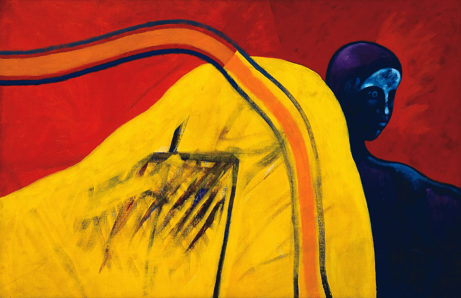 Aunque realizada veinte años después Piedra lunar se corresponde con las premisas de la Otra Figuración: liberar la figura humana a partir de una representación pictórica más sensible, mediante la cual fuese posible reflexionar acerca de la existencia del hombre. Luego de las violentas distorsiones de la figura humana y las armonias del color, en esta pintura, a través de una paleta de colores saturados, trazos libres y formas planas, el autor continúa evocando la figura del hombre, en oposición a las corrientes geométricas y a la representación mimética de la realidad.
