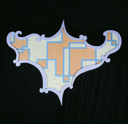 Las obras Sin título de la colección Castagnino+macro, aunque realizadas en distintas décadas, son piezas referenciales de aquella estética que caracterizó estas producciones artísticas de los noventa. En ambas, el artista, incorporó colores, tramas, formas y ornamentaciones de la arquitectura moderna y la decoración de interiores, con intención de generar un regodeo puramente visual. Desde su perspectiva, la añoranza hacia su infancia y ésta referencia a lo cotidiano en las formas concede a la expresión artística la capacidad de instalarse como elemento de mediación dentro de la cultura.