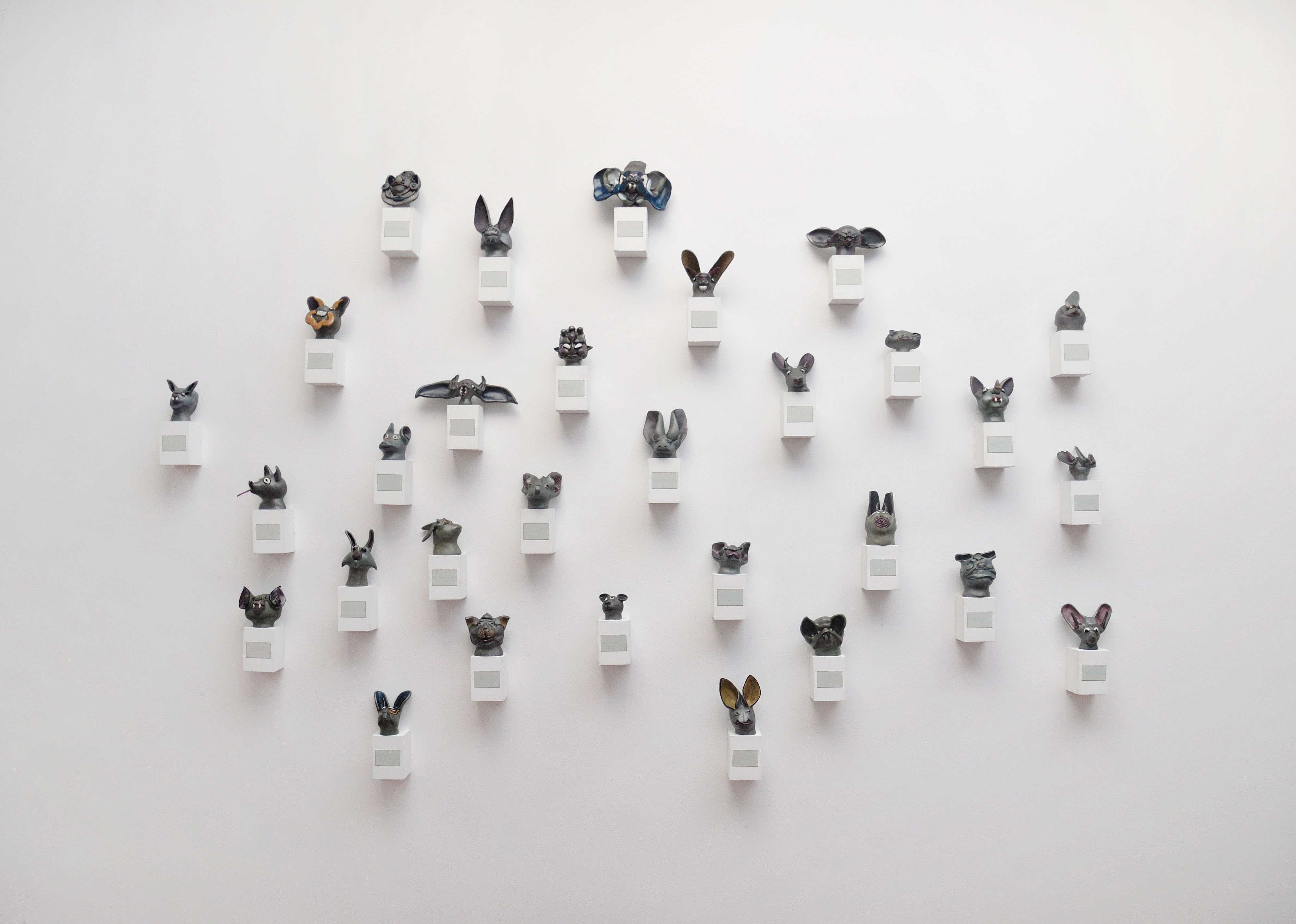 En la obra que forma parte de la colección Castagnino+macro, la artista presenta 30 cabezas de murciélagos trabajados en masilla epoxi y resina poliéster. El proyecto que las origina, parte de la intención de realizar pequeños retratos de diferentes tipos de murciélagos.