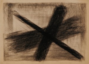 Sin Título (1964) y Sin Título (s/f), son dos carbonillas pertenecientes a la producción temprana de Favario . Ambas corresponden al período que se encierra entre su formación inicial en el taller de Juan Grela y el viaje a Europa que realiza subvencionado por el gobierno francés. Grela, además de haber sido uno de los integrantes del Grupo Litoral, fue quien formó y nucleó a gran parte de la generación de artistas de vanguardia en la Rosario de la década del 60, cuando la apertura hacia las tendencias internacionales estaba en plena ebullición. Antes de entregarse a la práctica del minimalismo y del arte experimental (c.1967), Favario dedicó parte de su carrera artística a realizar diversas indagaciones plásticas. Esto lo llevaría a abandonar paulatinamente, en sus pinturas y dibujos, los referentes a la realidad, al tiempo que se sumergía en un abstraccionismo de corte expresionista. En aquel momento su producción estuvo fundamentalmente signada por fuertes diagonales y grafismos, lo suficientemente amplios y dinámicos como para ser considerados gestuales. Estas búsquedas, aunque fundamentalmente formales, estaban ligadas a un afán rupturista que asociaba indistintamente el espíritu de las vanguardias históricas con el de las neovanguardias. Con este doble apego, la generación a la que perteneció Favario, buscaba quebrar con el estatismo en el que veían inmersos a artistas e instituciones locales. En diciembre de 1961, el rosarino anotaba entre sus apuntes, indudablemente influido por las enseñanzas de Juan Grella: “Tendré que practicar las gamas blancas y negras. ¿Líneas por el color o líneas por el contorno? Creo que línea por el contorno. Posiblemente en los planos definidos en la línea por el contorno, necesite aún una línea que juegue como tal (…) y refuerce (…) por lo menos si no todos, algunos planos. Puede ser también que mientras estos se definen por el contorno, una línea juegue dentro de ellos como un ‘grafismo’ (…)” .