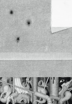 Como sucede con la serie de las camillas, en Sin título, García continúa reflexionando sobre a la muerte, la enfermedad, el abandono y la violencia como signos sociales. Conceptos que vuelven a plasmarse tanto mediante el desgaste de la superficie como en el uso de una imagen iconográfica. Asimismo, la mancha pintada sobre el rostro femenino refuerza los conceptos trabajados.