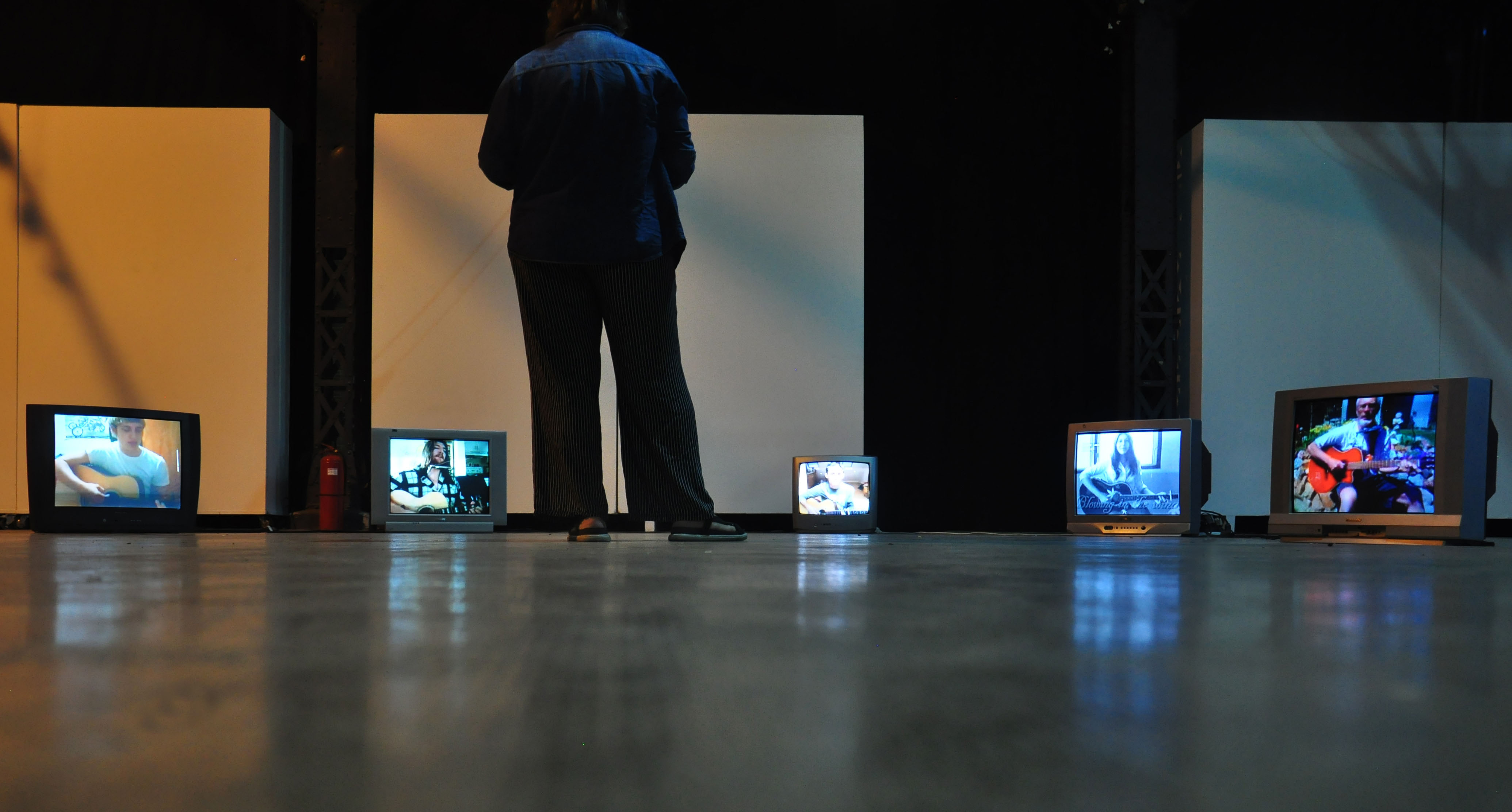 Aquí, cinco televisores proyectan en simultáneo una multiplicidad de personas que realizan una misma acción. De modo individual y en la intimidad del hogar, cada uno de ellos canta con su guitarra frente a la cámara Blowing is in the wind. Popular tema de Bob Dylan que da origen a la obra.