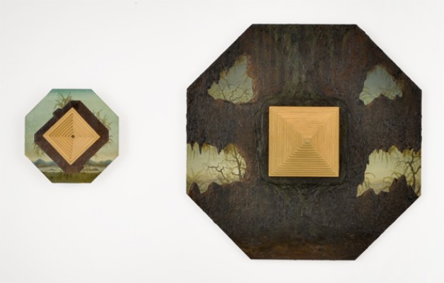 El marco interior se inscribe en estos planteos y, en este contexto, opera como un claro ejemplo del habitual entrecruzamiento que el autor lleva a cabo entre estilos y técnicas. Así los paisajes renacentistas, entre otros períodos clásicos, se mezclan con las atmósferas cargadas de extrañeza y ciertos postulados geométricos de los años 40, en Argentina. El óleo y la madera se unen a las herramientas digitales para recrear escenas bucólicas de Veronese, Brueghel, Friedrich a partir de conceptos desarrollados por el concretismo, Raúl Lozza y el grupo MADÍ.