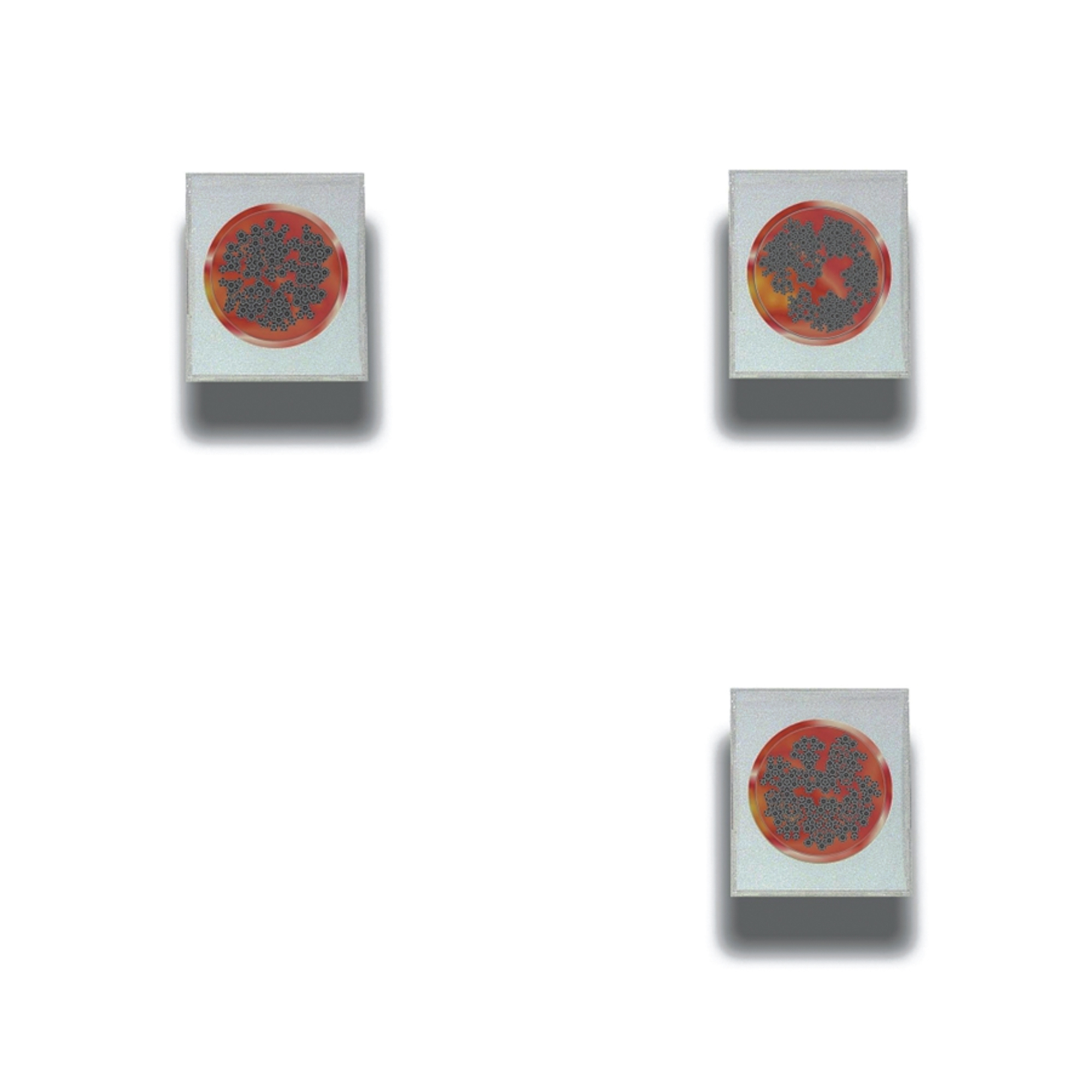 La serie Conversaciones pertenece a este período. Es un conjunto de impresiones digitales basadas en los “Mosaicos Penrose”, en donde la simpleza de las formas, la cualidad de los colores y los trazos lineales uniformes exigen la adopción de nuevos soportes: las cajas de acrílico. En este caso, la base cristalizada contribuye a evitar las cualidades proporcionadas por la materia en momentos anteriores: confusión, nebulosidad, borrosidad, opacidad, entre otras.