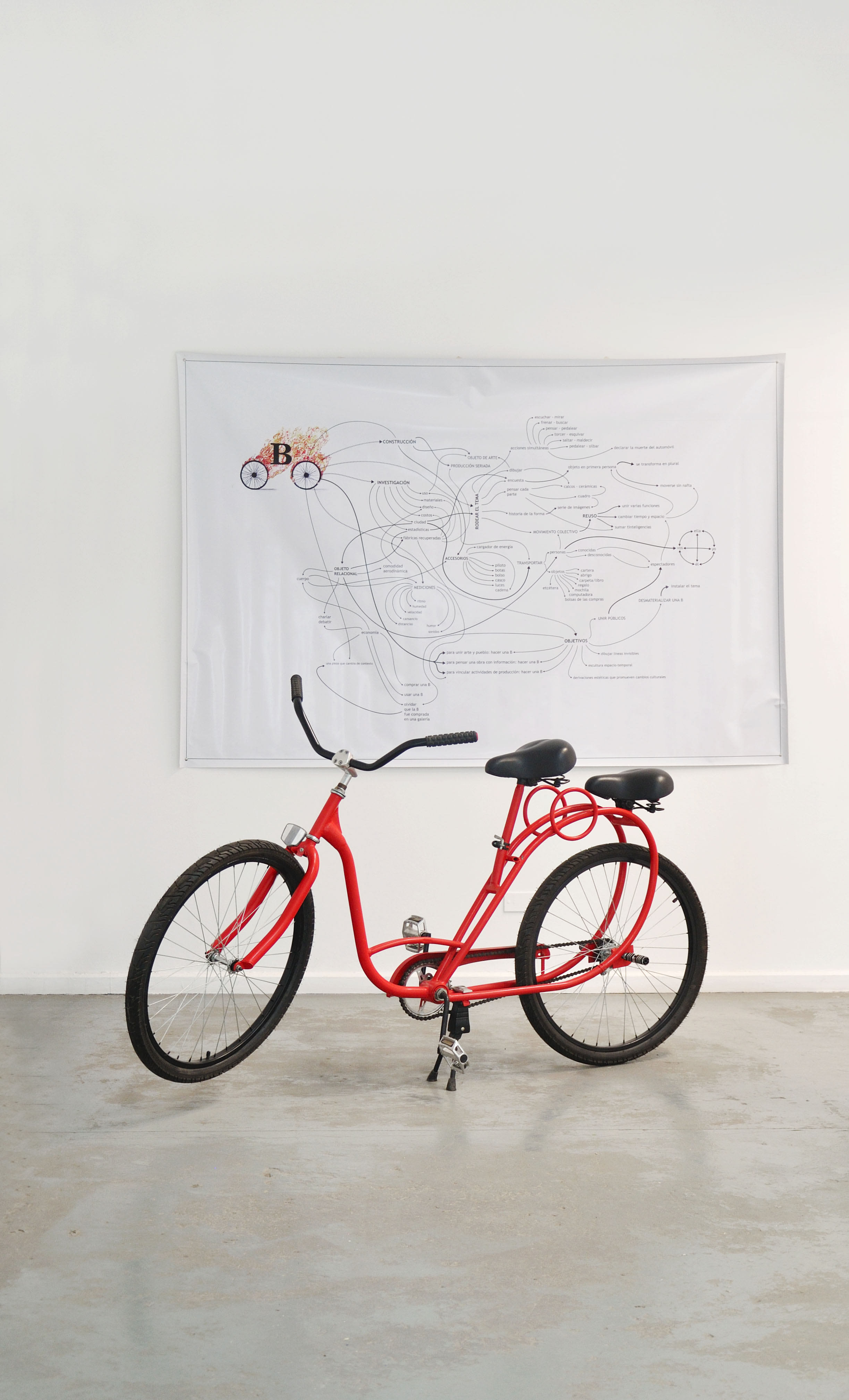 Bicicleta de ciudad (BiCI) presenta en el espacio expositivo la mencionada unidad de transporte junto a un modelo relacional impreso en lona que reúne datos y proposiciones que surgen de pensar el objeto en sus diversos usos y relaciones. Mediante esta lógica introduce aspectos sobre la producción industrial, la producción de objetos artísticos, el diseño de formas, el mercado del arte, la experiencia urbana, la economía y la corporalidad. En este sentido, la obra presenta uno de los ejes fundamentales en la interpretación de la obra del artista que ubica al arte como herramienta de pensamiento.