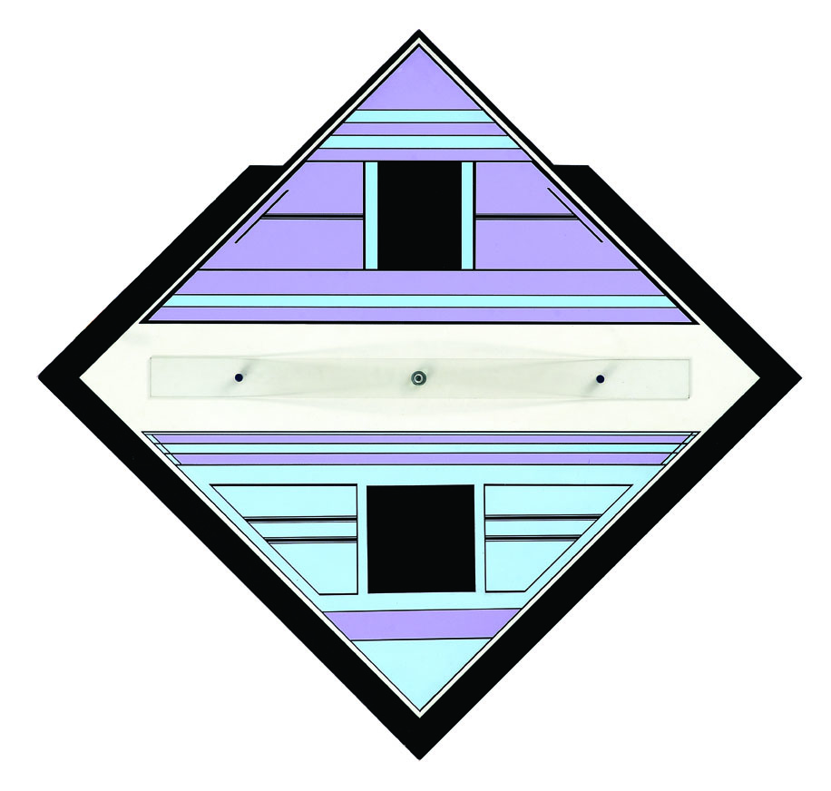 En esta pieza, incorporada a la colección Castagnino+macro en 2005, el marco recortado, la disposición diagonal del mismo y la superposición de plástico atestiguan la tranquila convivencia de la rigurosidad estructural con el hacer experimental, de lo razonado con lo fortuito. Características propias de los postulados que lo llevaron a fundar el grupo Madí Internacional en 1992.